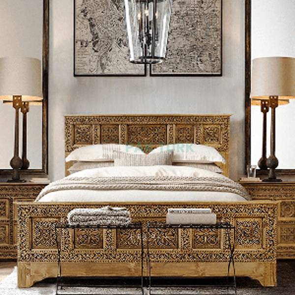 π¨ Design: Intricately hand-carved floral and geometric panels throughout headboard and footboard