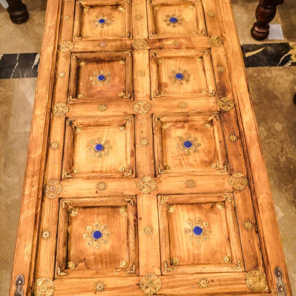 ✨ Brass inlay detailing with floral motifs and blue enamel accents