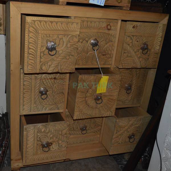 🪵 Detailing: Intricately hand-carved floral and leaf motifs on drawer fronts