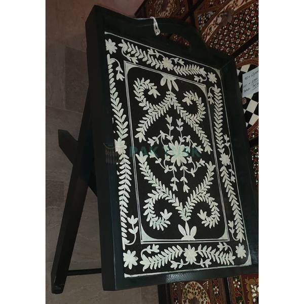 🎨 Design: Striking floral inlay in black and white with intricate patterns