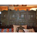 🪟 Design: Traditional paneled structure with carved peaks and scalloped edges