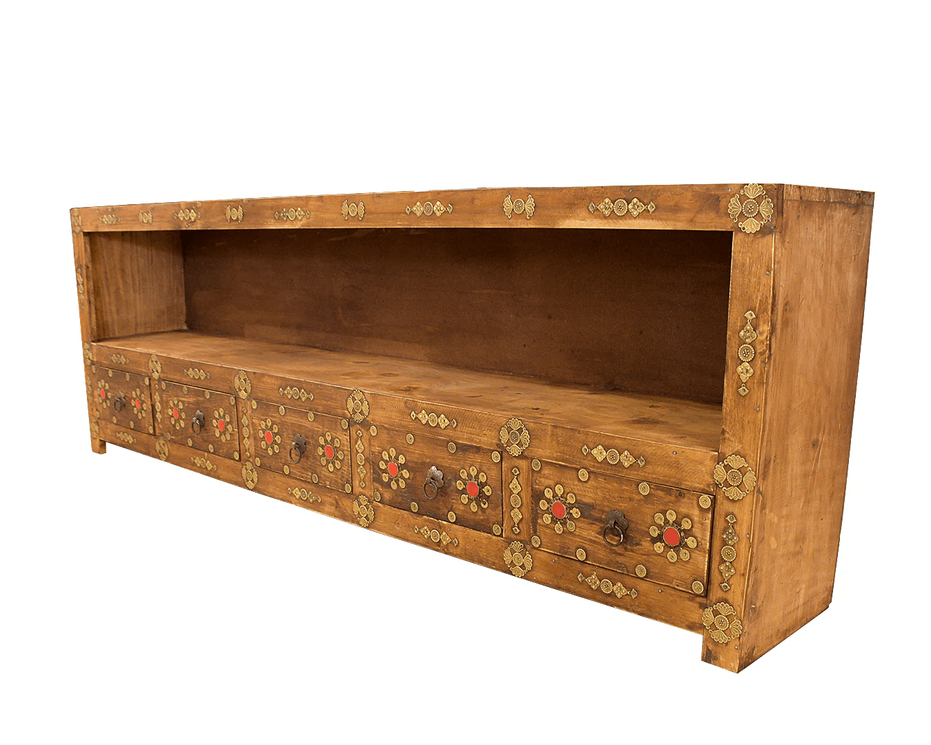 🧰 Multiple small drawers with ornamental brass handles