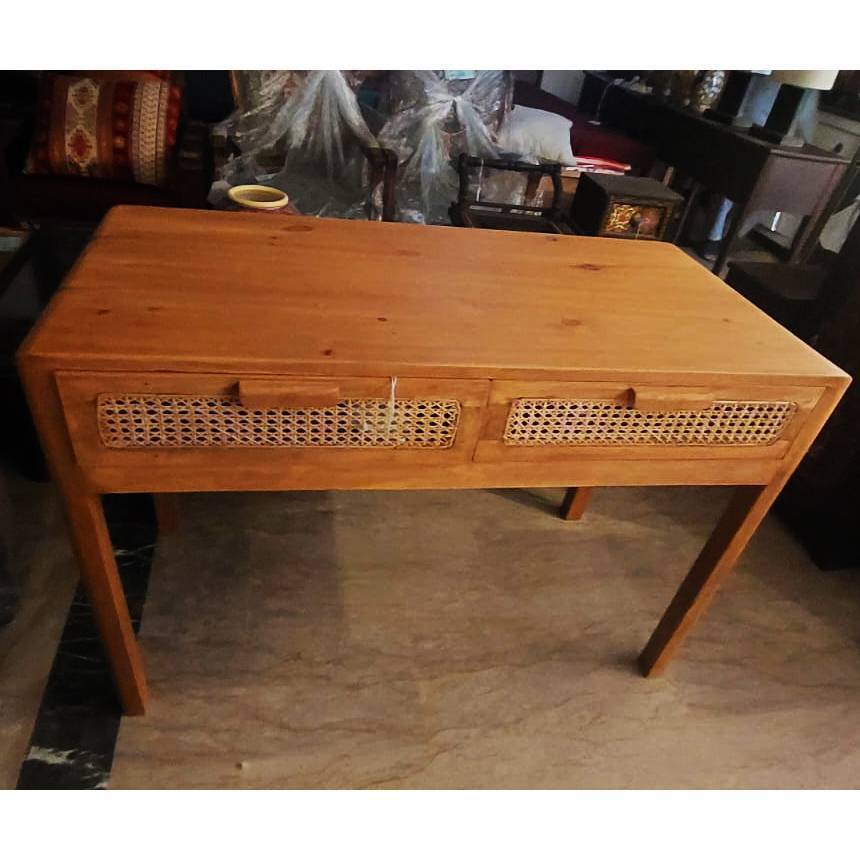 🗄️ Storage: Includes two cane-front drawers for storing stationery and essentials