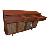🚪 Storage: 3 upper drawers & 4 cane-front cabinet doors for ample storage