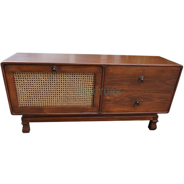 Material: Solid wood frame with handwoven cane door panel