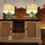 🪑 Design: Elegant blend of minimalist form and traditional craftsmanship, featuring cane paneling on both cabinet doors