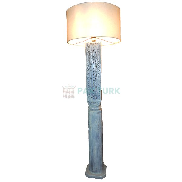 🪔 Design: Tall, intricately carved wooden base with delicate geometric and floral motifs