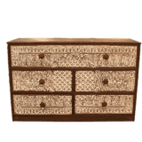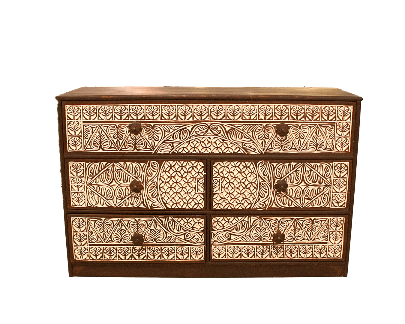 🪵 Material: Solid wood with hand-carved whitewashed floral and geometric designs
