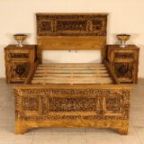 🪚 Design: Elegant panel structure featuring intricate hand-carved floral and latticework on both headboard and footboard