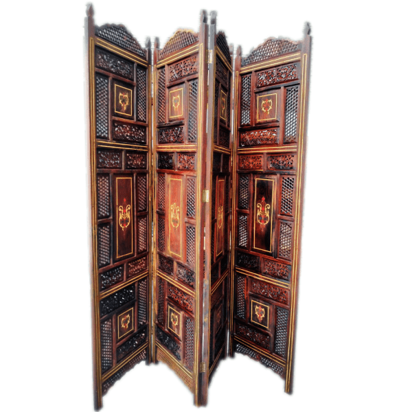 🖼️ Panels: Four folding panels with colorful hand-painted tile insets