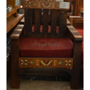 🎨 Color: Natural wood finish paired with deep maroon cushion tones