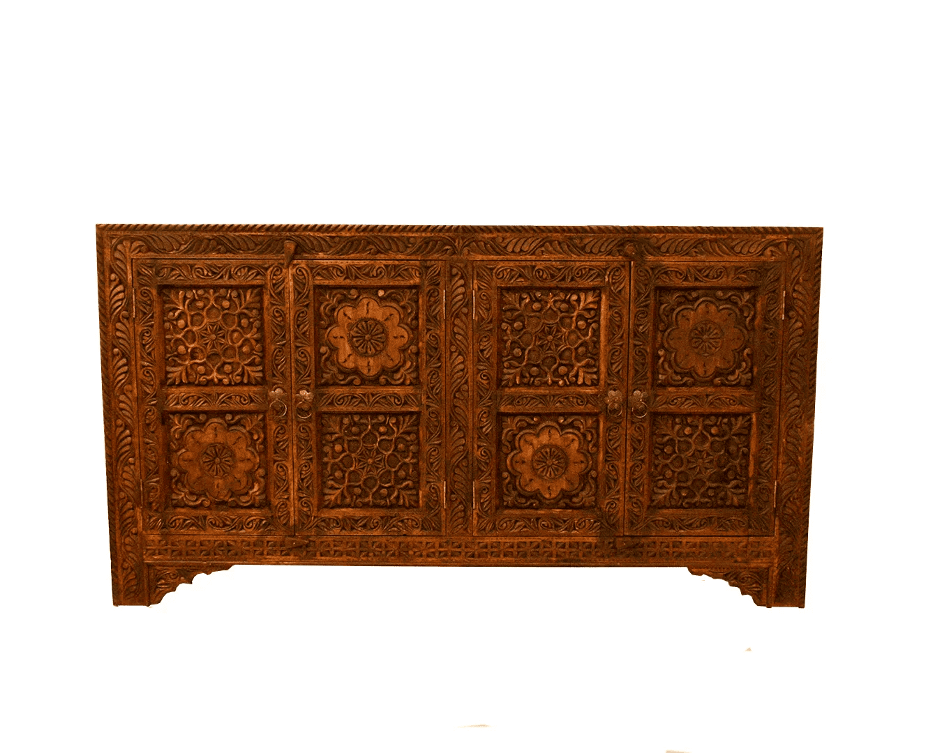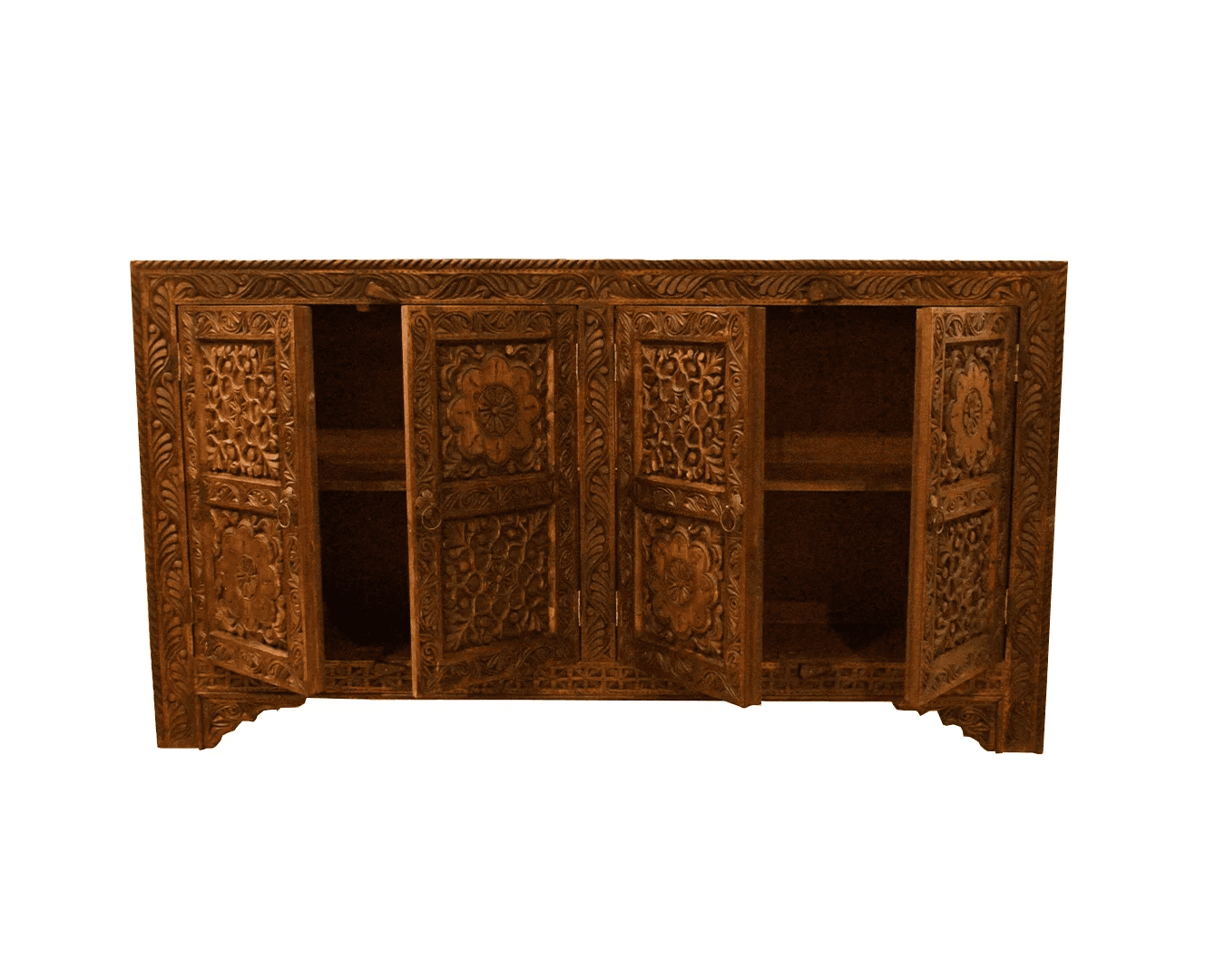 🪵 Deeply hand-carved floral and lattice motifs on solid wood