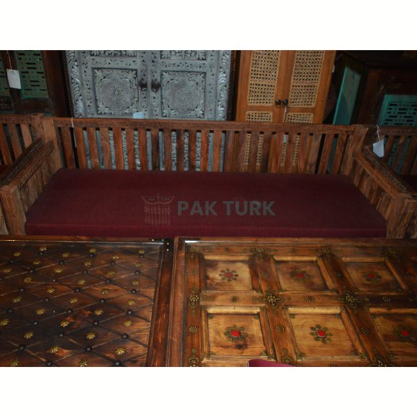💺 Long cushioned seat in rich maroon fabric for comfort