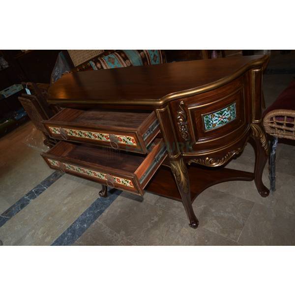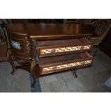 🎨 Design: D-shaped front with curved legs and hand-painted ceramic tile inlays