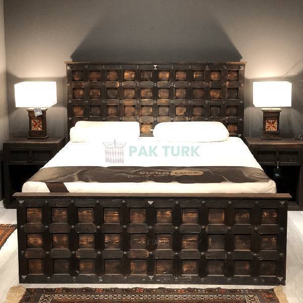 🛏️ Material: Solid wood frame with iron grid accents on the headboard and footboard