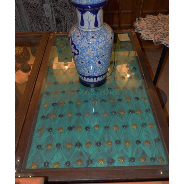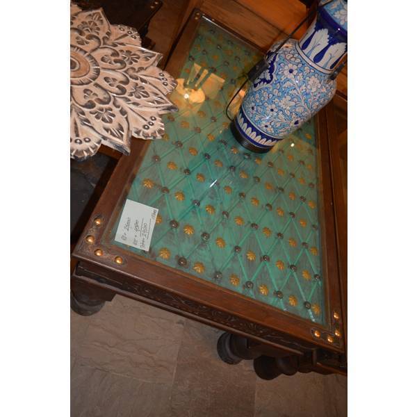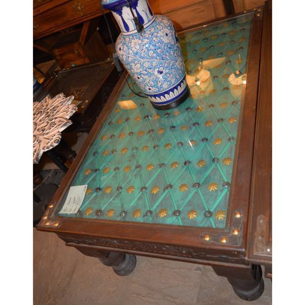 🪟 Tempered glass top revealing artistic iron detailing beneath