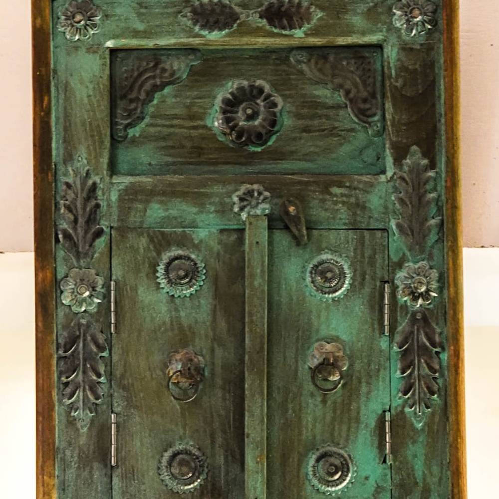 🪚 Material: Aged wood with oxidized iron floral detailing