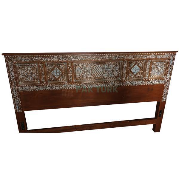 Design: โจ Ornate hand-carved headboard with intricate floral and geometric detailing