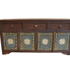 🪵 Material: Solid wood with intricate Moroccan-inspired carvings and tile inlays