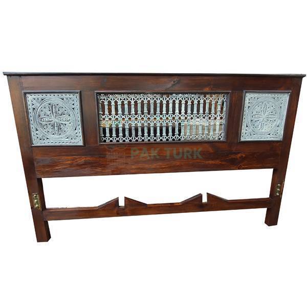 Design: โจ Elegant bed with classic carved panels and a standout white iron middle jali design