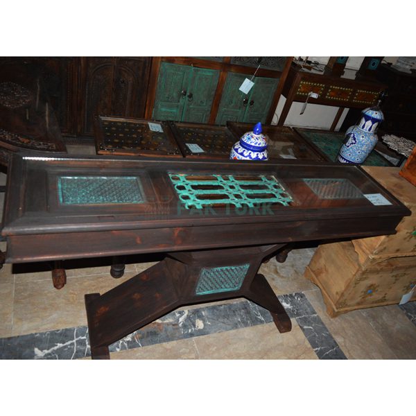 Designed with a rich dark wood frame, this table features a sleek glass top perfect for showcasing collectibles, décor, or merchandise.