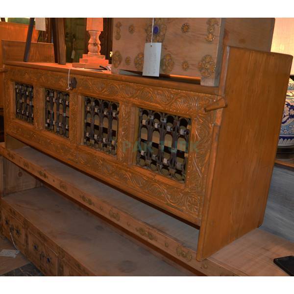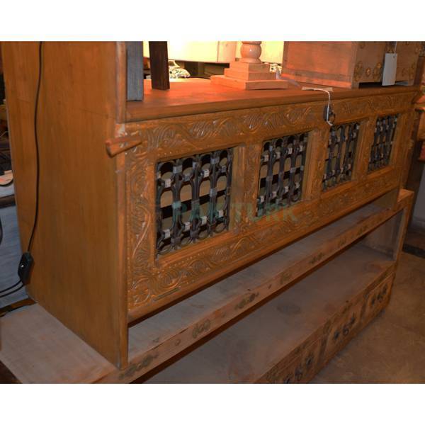 🔲 Traditional jali (grill) design on cabinet fronts for ventilation