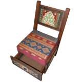 🪑 Design: Traditional wooden chair with intricate hand-carved details and a built-in drawer