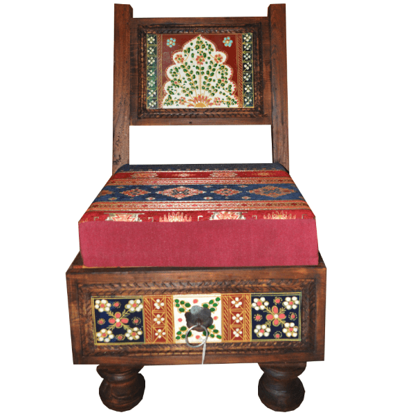 🖌️ Artwork: Features a colorful painted floral panel on the backrest—rich in cultural motifs