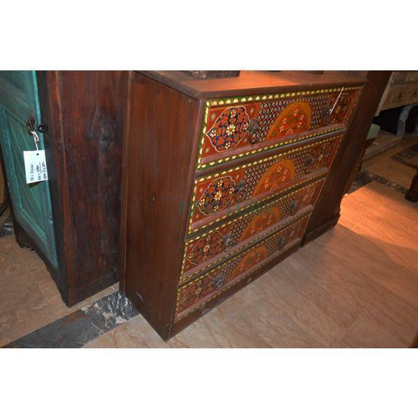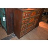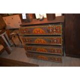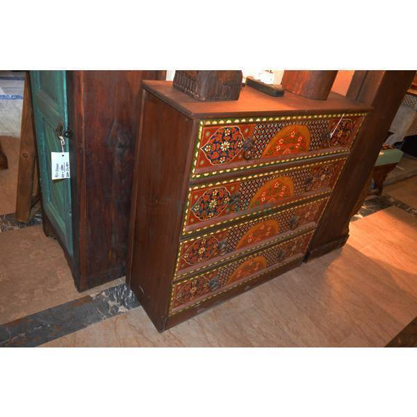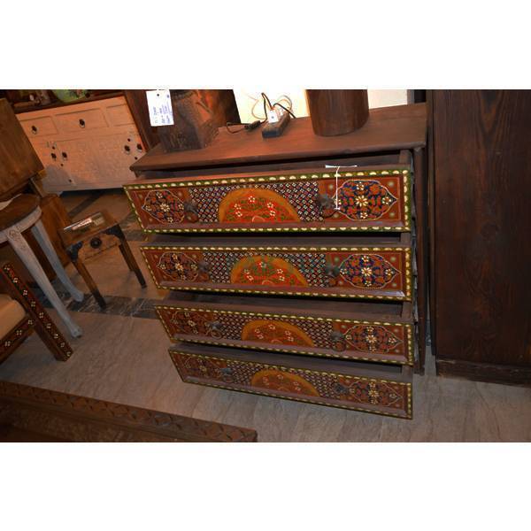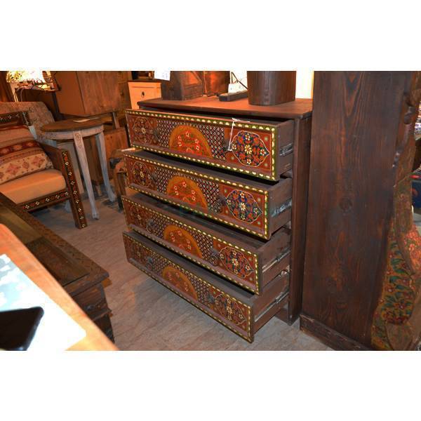🎨 Design: Vibrantly hand-painted drawer fronts with traditional floral and arch motifs in red, orange, blue, and gold tones