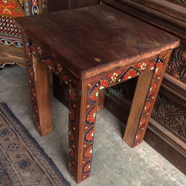 Design: โœจ Compact square table with vibrant hand-painted leg detailing