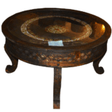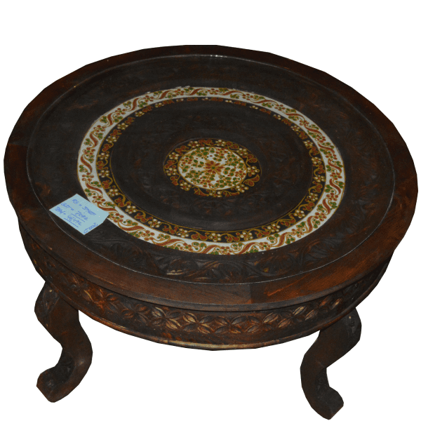 ✨ Beautifully handcrafted round wooden central table with intricate carved detailing