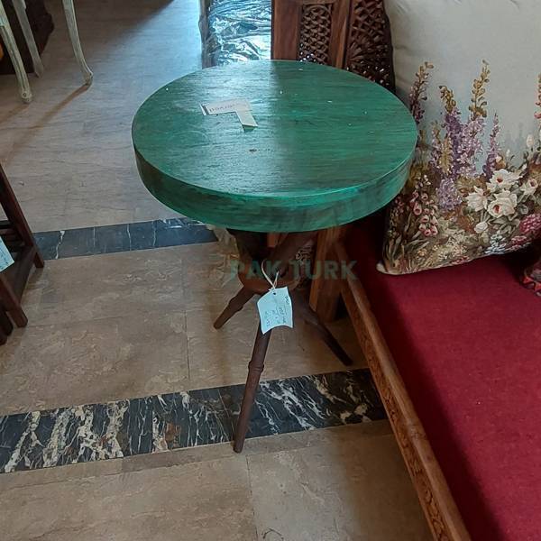 🟢 Design: Compact round tabletop with a striking turquoise-green finish